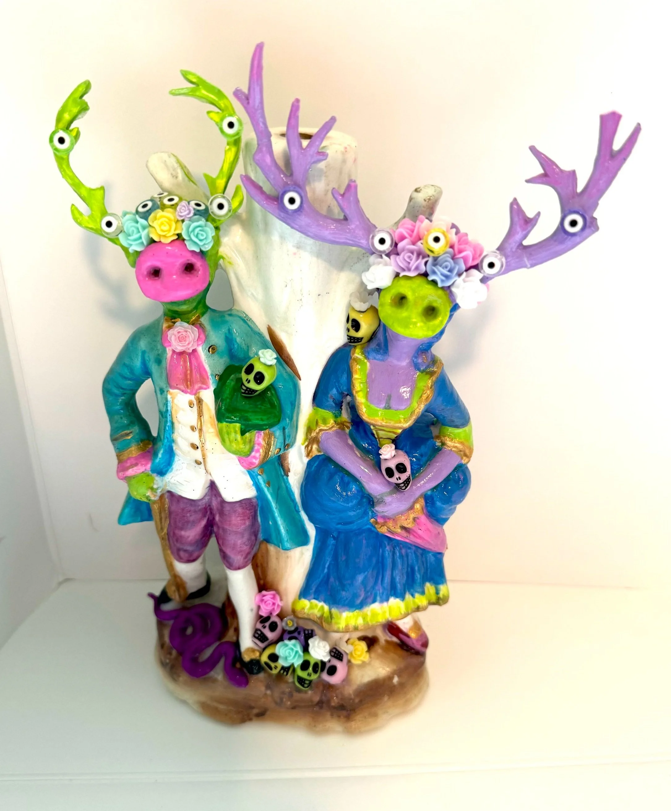 Romantic and spooky skull and flower ceramic picture frame: SOLD